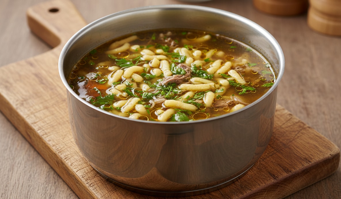 Silný hovězí vývar s bylinkovým kapáním