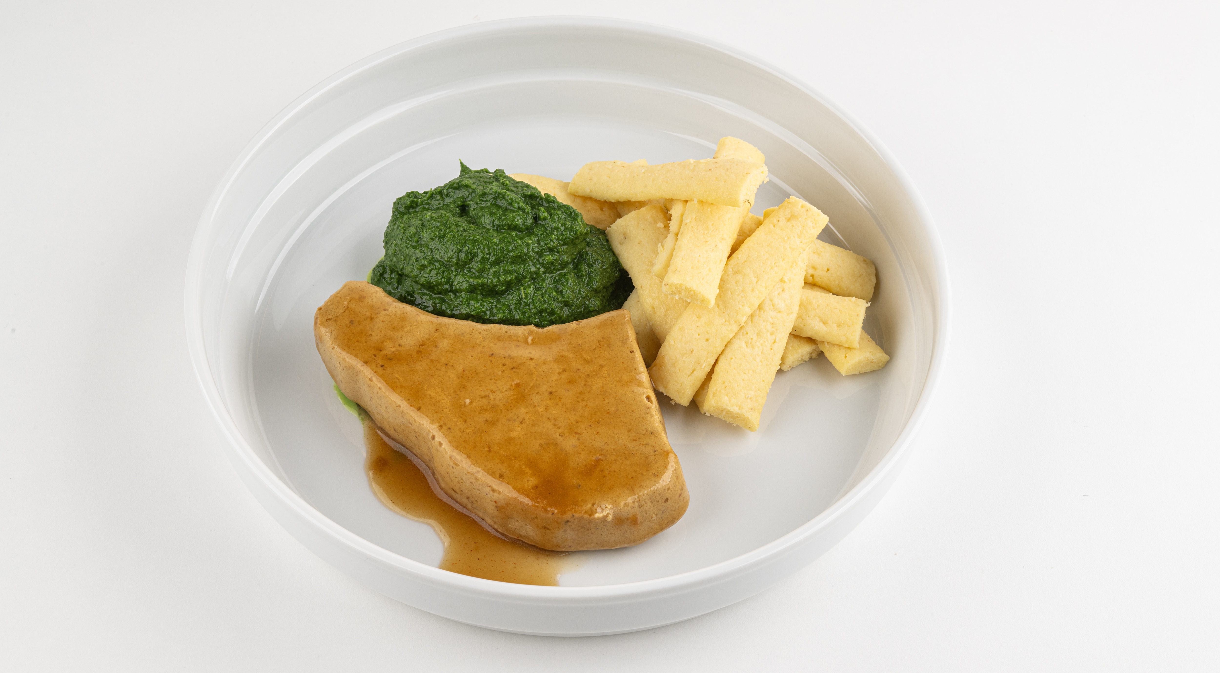 Vepřová kotleta se špenátem, bramborové špalíčky